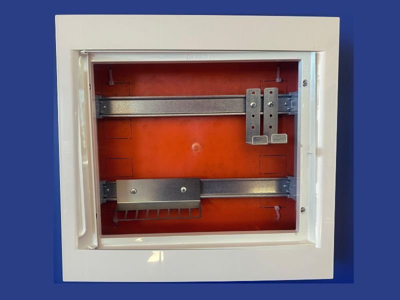- Puerta ciega reversible de ABS blanco, caja altamente resistente a los impactos.