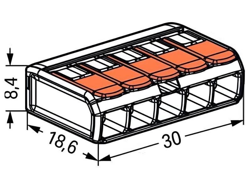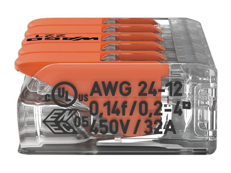 Conectores de Empalme Eléctrico con derivación Wago - Borna de 5 Salidas Cod. 221-415