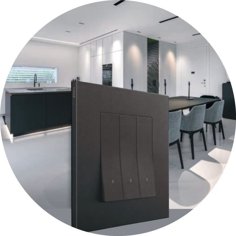 Interruptores, tomacorrientes, tomas de datos y multimedia concebidos para brindar confort, eficiencia energética y seguridad. Cuidando cada proyecto con esmero para integrarlos con versatilidad y aportar valor a cada espacio.