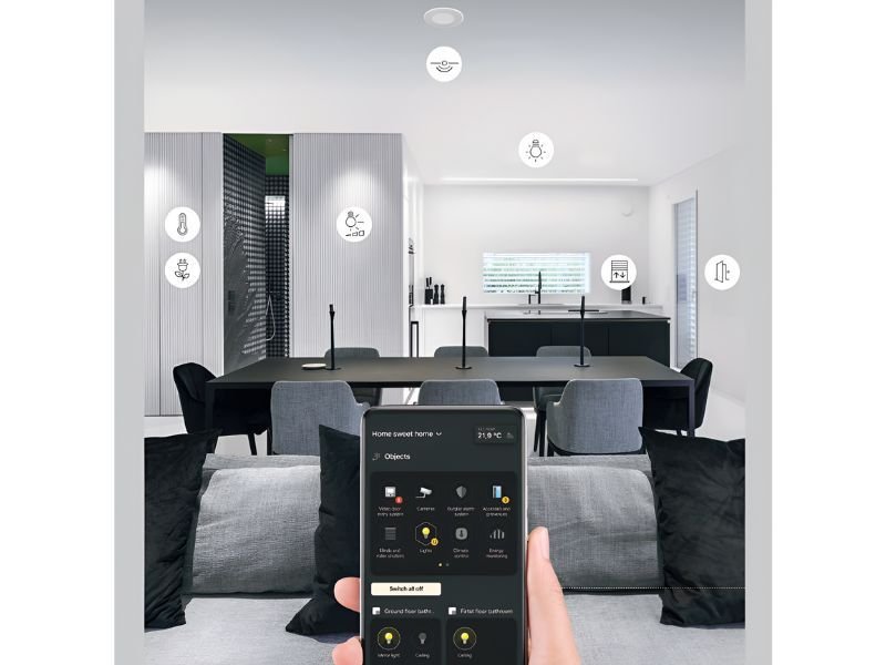El control total desde una sola aplicación: La plataforma Vimar permite controlar todos los aspectos de tu hogar desde una única app. Ya sea la iluminación, la climatización, la seguridad o cualquier otro dispositivo conectado, todo está centralizado en una sola interfaz.